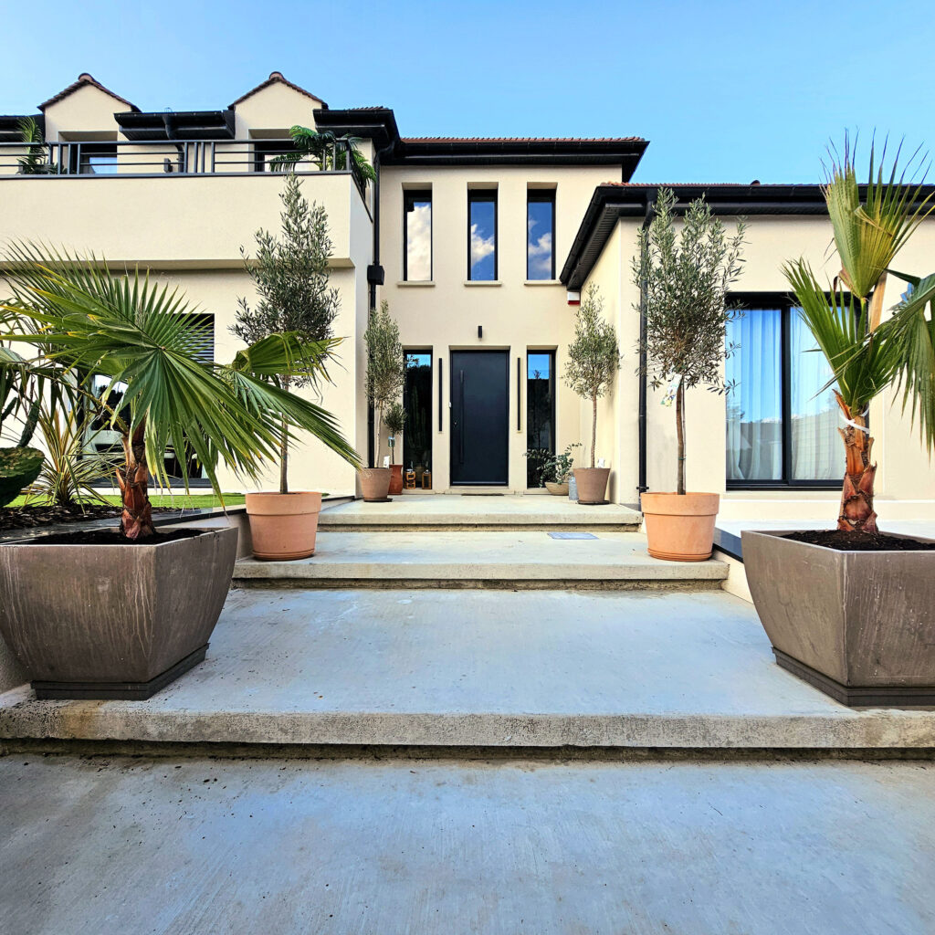 Ce projet consistait à repenser l’ensemble des extérieurs d’une propriété afin de structurer les espaces, sécuriser le terrain et valoriser l’architecture de la maison.