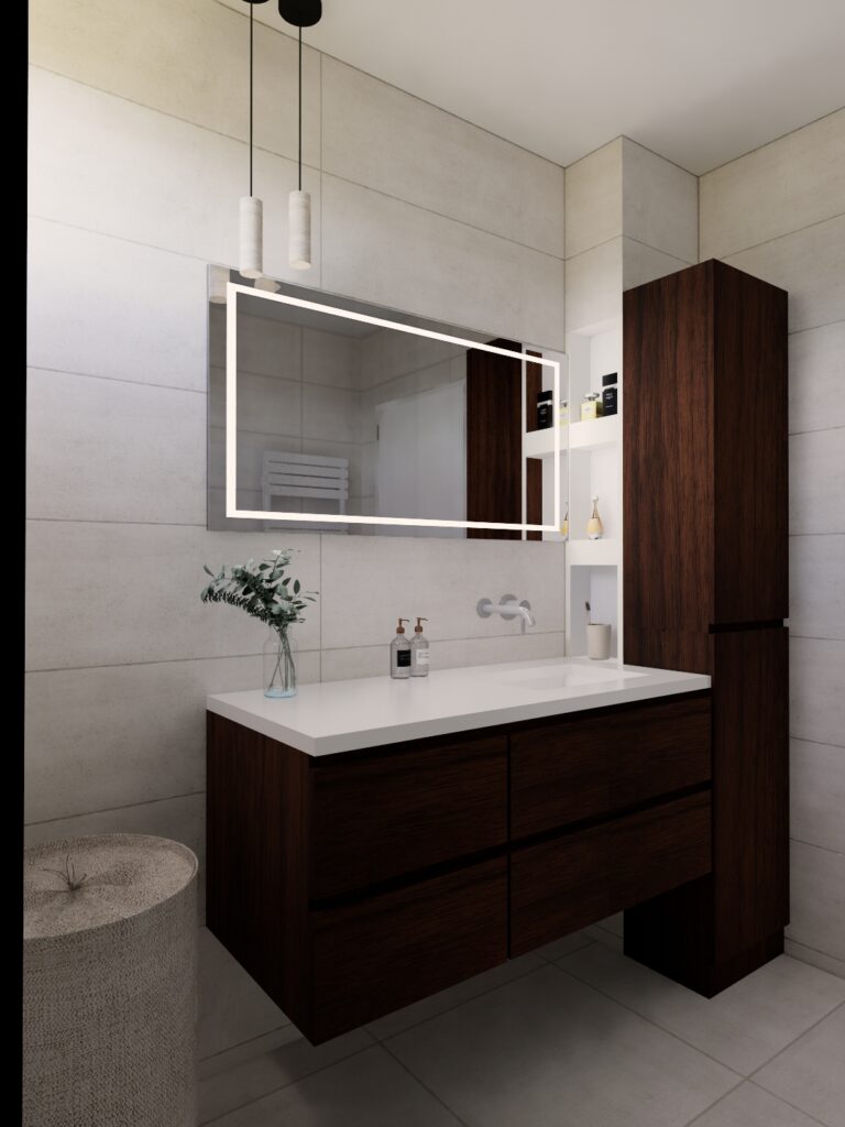 Un projet où modernité et intemporalité se rencontrent pour donner naissance à une salle de bain esthétique, confortable et pensée pour le quotidien.